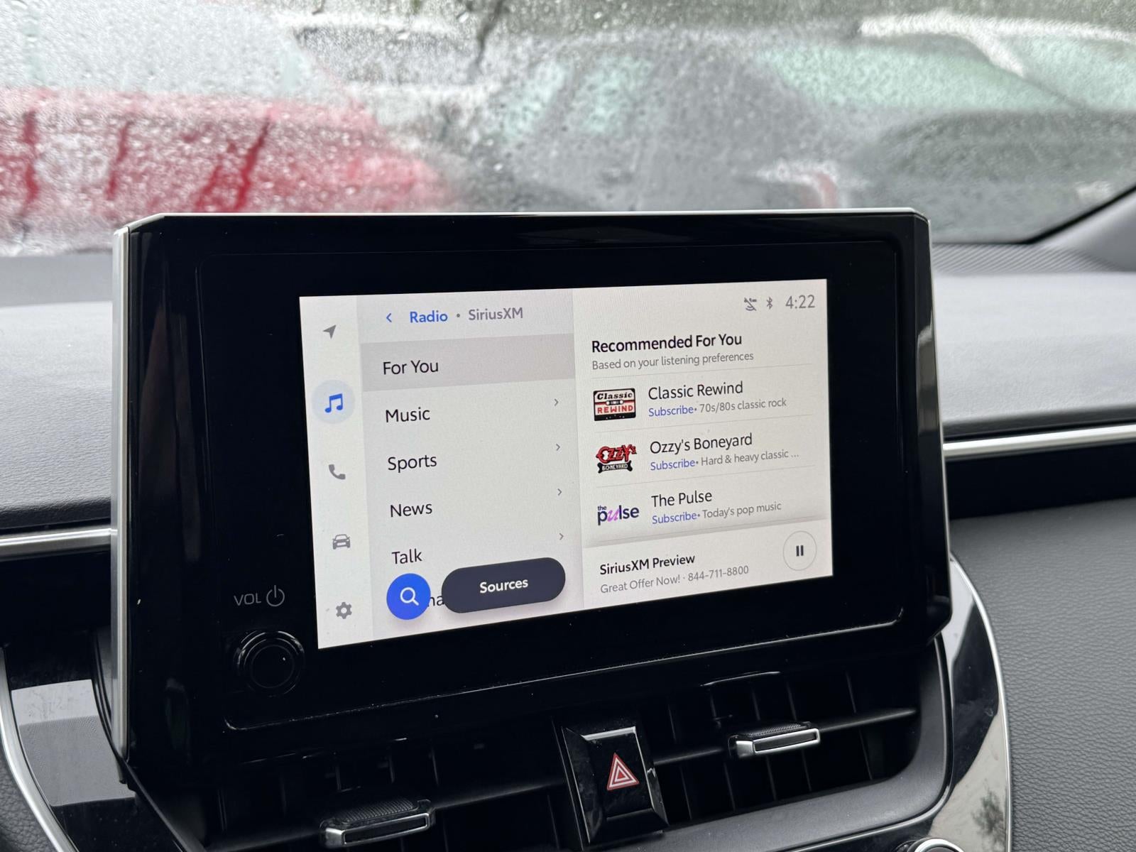 - Radio: 8" Toyota Audio Multimedia -inc: 6 speakers, wireless Apple CarPlay and Android Auto compatibility and SiriusXM w/3-month Platinum Plan trial subscription, See toyota.com/audio-multimedia for details
